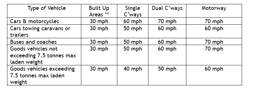 You should always comply with the speed limit in force on the public highway and drive at a speed that is appropriate for the conditions at the time which will allow you to stop safely.